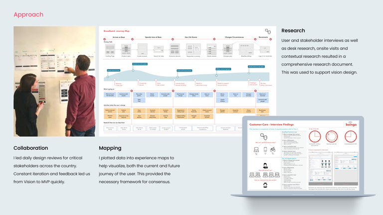 We built a two-part roadmap to migrate consumer and customer care properties. As a functionality, identified in a visioning phase was then added, extend to other systems.