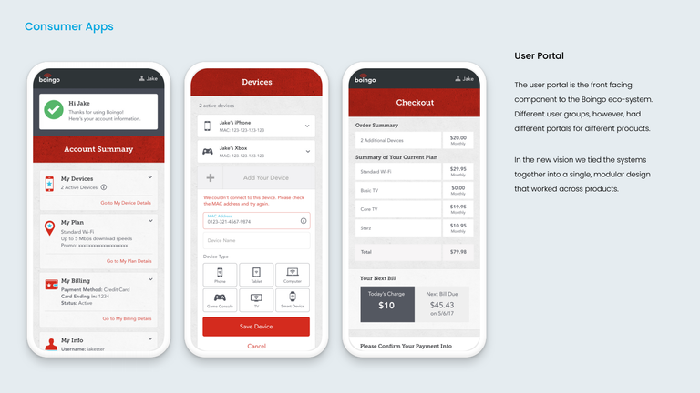 Each service line had been built on a separate stack, and the same was true for internal tools such as their customer care tool. Boingo, seeing the need for a more unified technology strategy, was migrating to a new CMS whose goal would be to unify codebases, and along with them, create efficiencies and continuity of experience. Tasked with redesigning their service to military bases, I developed a larger strategy to unify all systems with a single library.