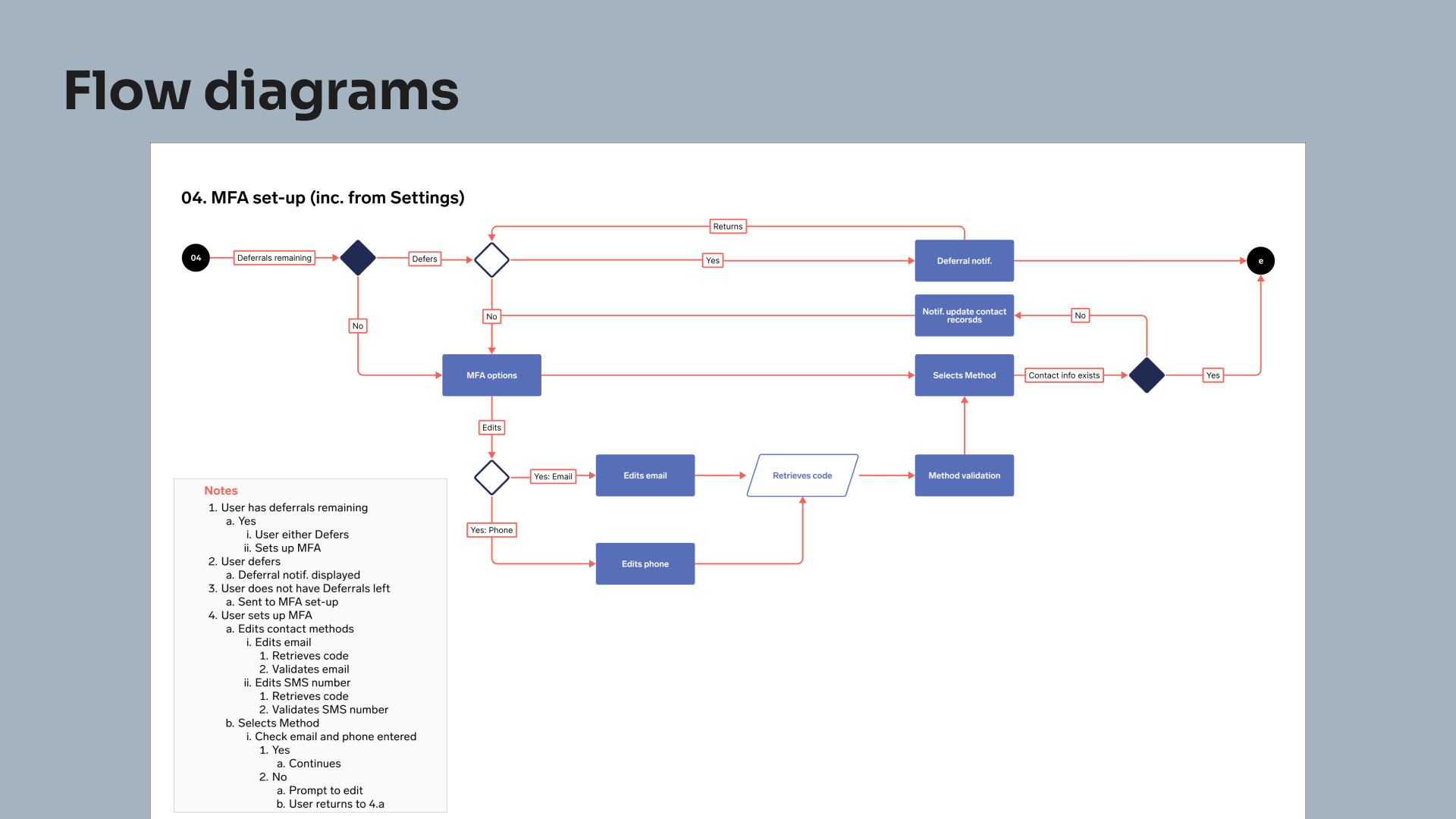 Given the tactical nature, as well as the breadth of impact (every user of every client), we wanted our ducks in a row. We therefore dove right into requirements, and then flows. These were used to align and plan, as well as capture any missing requirements.