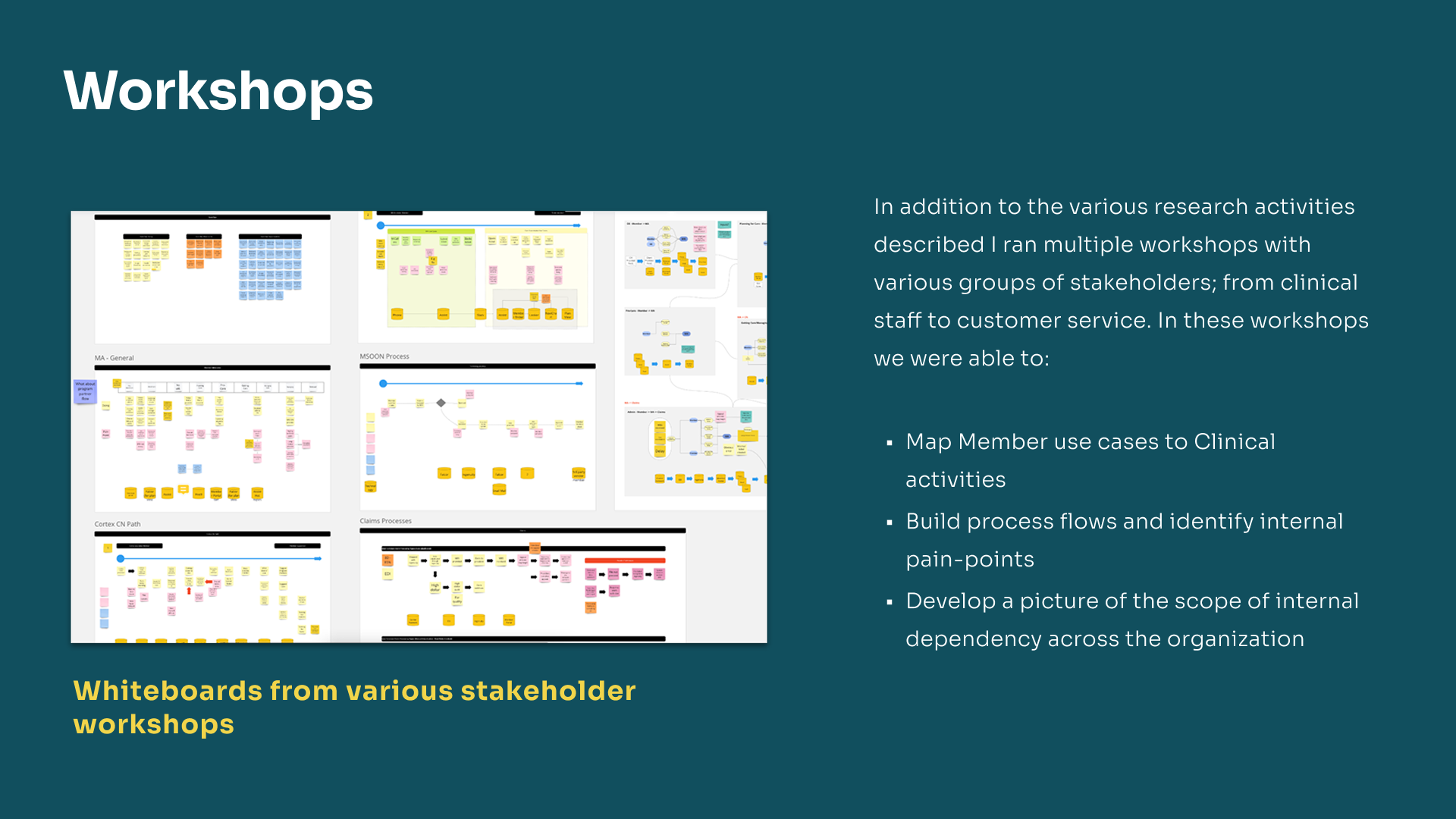 More importantly, all the findings were collected in a Service Blueprint. This asset became a useful tool, supporting strategic conversations and directing strategy from AI priorities to care team purpose and tooling.